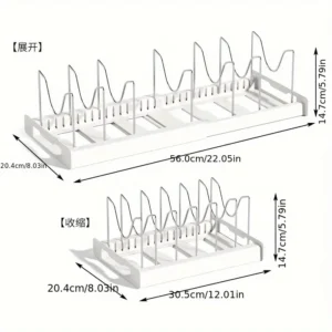 Keep your kitchen organized with the 1pc Adjustable Multi-Purpose Pot Organizer Rack. Designed for flexibility, this expandable rack features adjustable dividers that accommodate various sizes of pots, pans, and lids. Made from durable plastic, it ensures long-lasting use while maintaining a lightweight design. Perfect for kitchen cabinets, countertops, or pantry storage, this organizer maximizes space and minimizes clutter. Its user-friendly assembly and adjustable functionality make it a practical solution for any home. Streamline your kitchen with this essential storage accessory, ideal for easy access and efficient organization of your cookware collection.