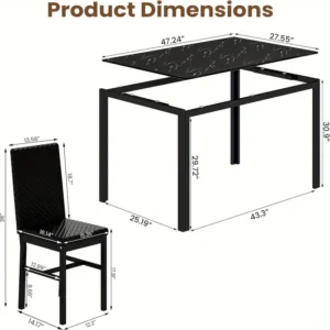 Upgrade your dining space with the Modern Luxurious Style 5-Piece Dining Room Table Set by DKLGG. This elegant set includes a tempered glass tabletop and a sturdy metal frame, ensuring durability and style. The four faux leather-upholstered dining chairs offer comfort and sophistication, perfect for small spaces or breakfast nooks. Designed with a counter-height table, this set is ideal for casual meals or intimate gatherings. Crafted from glass, metal, hardwood, and particle board, it blends modern aesthetics with functional durability. A perfect addition to contemporary homes, it provides a practical, space-saving solution without compromising on luxury.