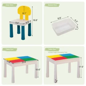 Make playtime more exciting with this Kid Activity Table Set, which includes a table, two chairs, and 100 large-sized building blocks. Designed for children ages 3 to 6, this versatile set lets kids build, play with water or sand, and engage in creative activities. The table is compatible with classic blocks, encouraging hours of imaginative play. Made from durable plastic in vibrant colors, this set provides a safe and fun environment for young builders. Perfect for boys and girls, it’s a great addition to any playroom and does not require a power source.