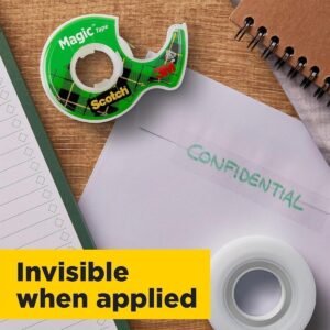 TRUSTED 3M ADHESIVE TECHNOLOGY: The Scotch Brand’s matte-finish invisible tape uses trusted 3M adhesive technology to bond tightly with paper ORIGINAL MATTE FINISH, INVISIBLE TAPE: Scotch Magic Tape is frosty on the roll, but disappears when applied on most paper 100’S OF USES: Perfect for permanent paper mending, repairing documents, wrapping gifts, sealing envelopes, mending…