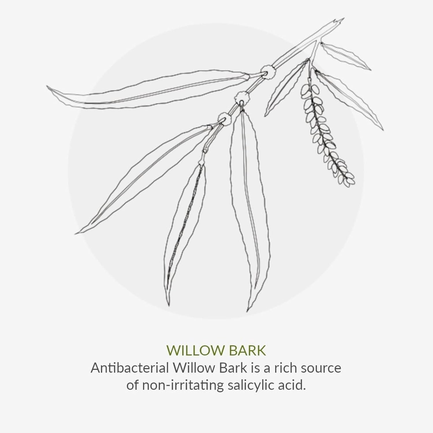 - TEA TREE, WILLOW BARK & WITCH HAZEL are our key anti-blemish actives. Tea Tree has strong anti-inflammatory properties, whilst Willow Bark is a rich source of non-irritating salicylic acid and astringent Witch Hazel combats oiliness.