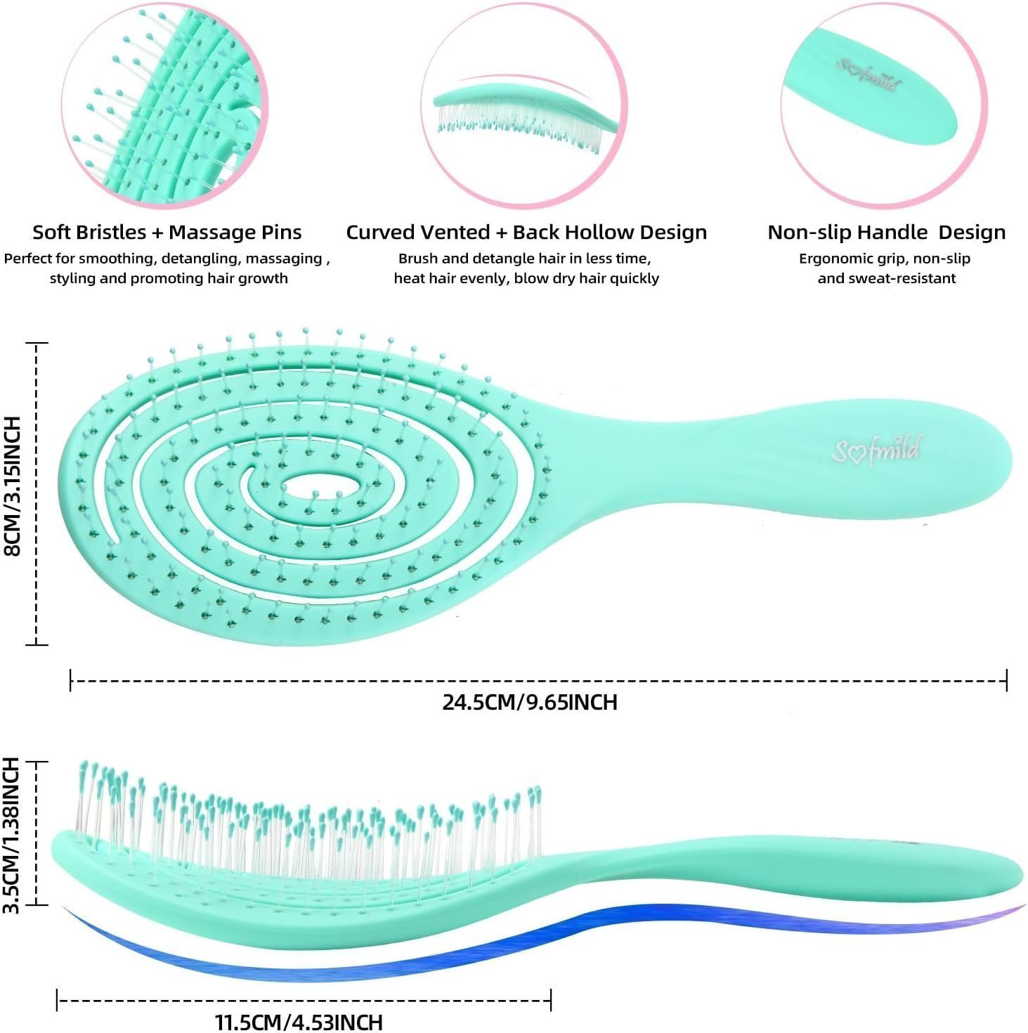 • Game Changer for Removing Knots and Tangles: Its most significant advantage over comparable products is its ultra-soft bristle. The soft bristles help you detangle your hair faster, easier and minimize pain, split ends and breakage of hair, provide you an effective and healthy way for daily hair care. No more pulling and tugging! No more pain and breakage! No more tears and fights!