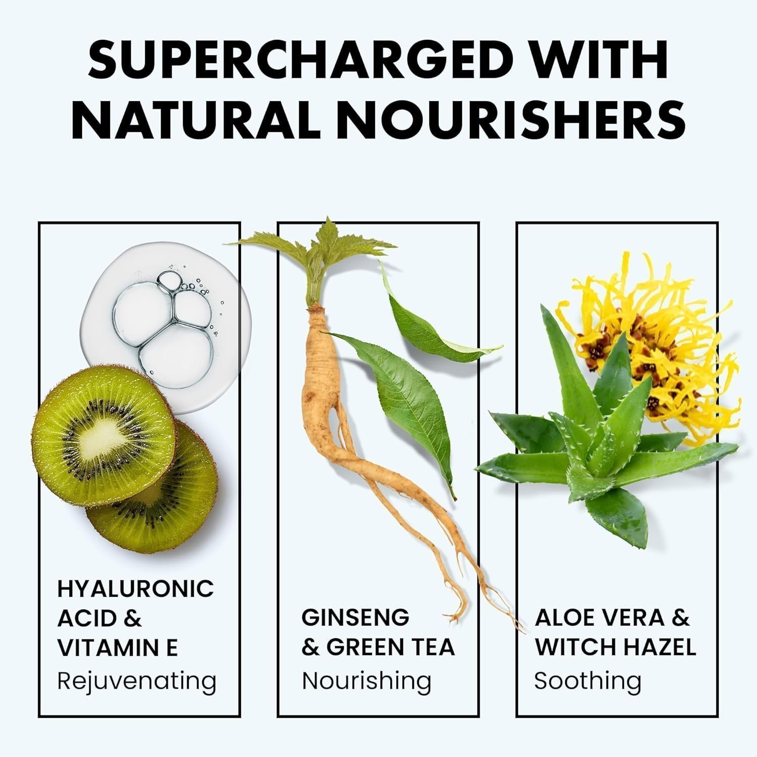 - 𝗛𝗘𝗥𝗢 𝗛𝗬𝗗𝗥𝗔𝗧𝗢𝗥𝗦 + 𝗣𝗢𝗪𝗘𝗥𝗙𝗨𝗟 𝗦𝗞𝗜𝗡 𝗦𝗧𝗥𝗘𝗡𝗚𝗛𝗧𝗘𝗡𝗘𝗥𝗦: 2.5% hyaluronic acid penetrates all skin layers to deeply nourish, while powerful antioxidants (vitamin E, aloe vera, green tea and ginseng) fade hyperpigmentation and smooth the look of wrinkles.