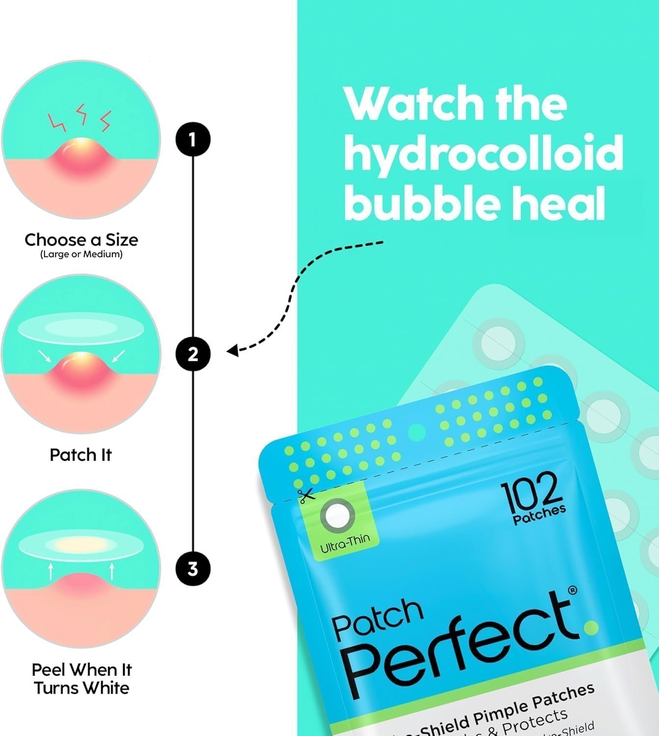 Patch Perfect Spot Patches (102 Count), Vegan & Cruelty-Free Spot Stickers (2 Sizes)