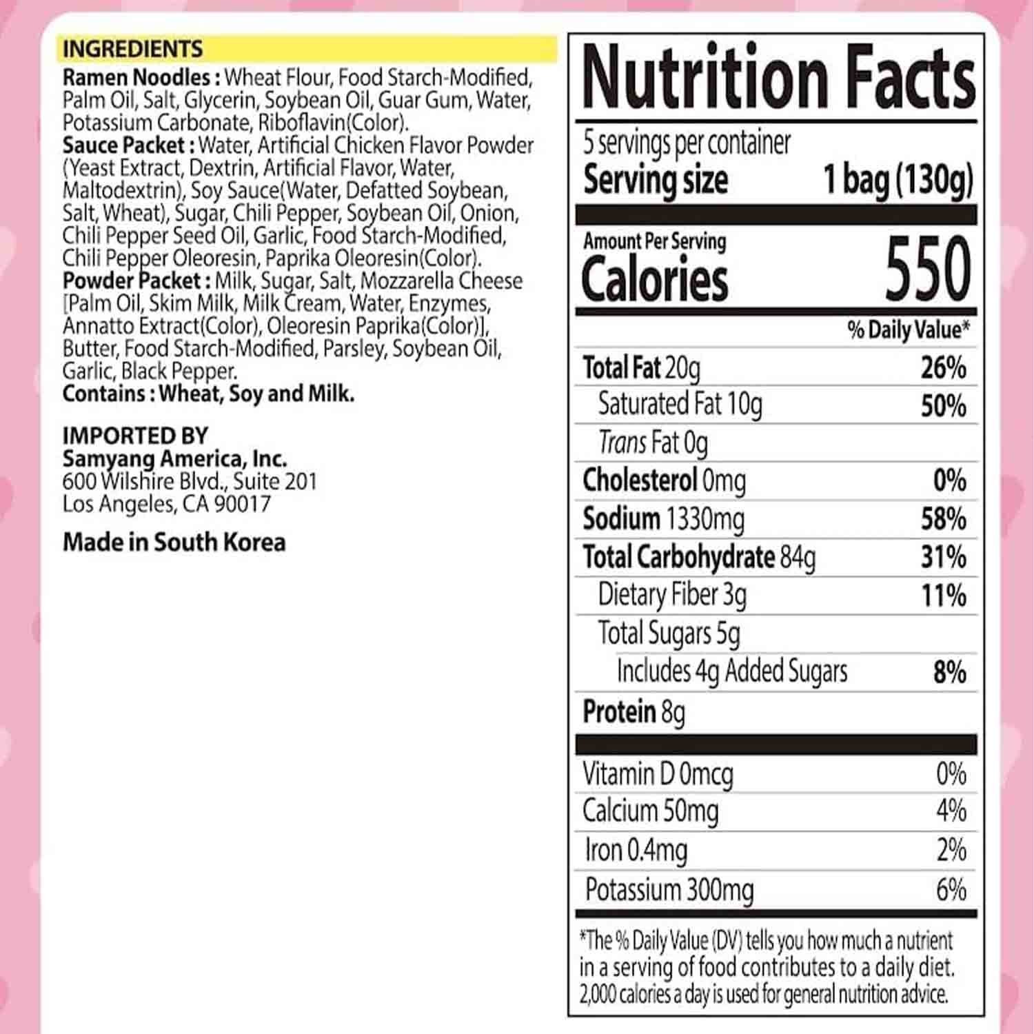 Experience a bold and savory noodle delight with a unique combination of ingredients. These noodles blend wheat flour, green tea extract, and a smooth liquid soup featuring artificial chicken flavor, habanero pepper, and chili oil. Enhanced with a creamy seasoning mix of milk, mozzarella cheese, and buttery notes, each bite delivers irresistible flavor and spice. Perfectly crafted for food lovers craving a spicy, rich, and satisfying meal. The product is manufactured with utmost care in a facility handling allergens like peanuts, nuts, and sesame seeds, ensuring top-quality standards. Quick to prepare and full of flavor, it’s a delicious choice.