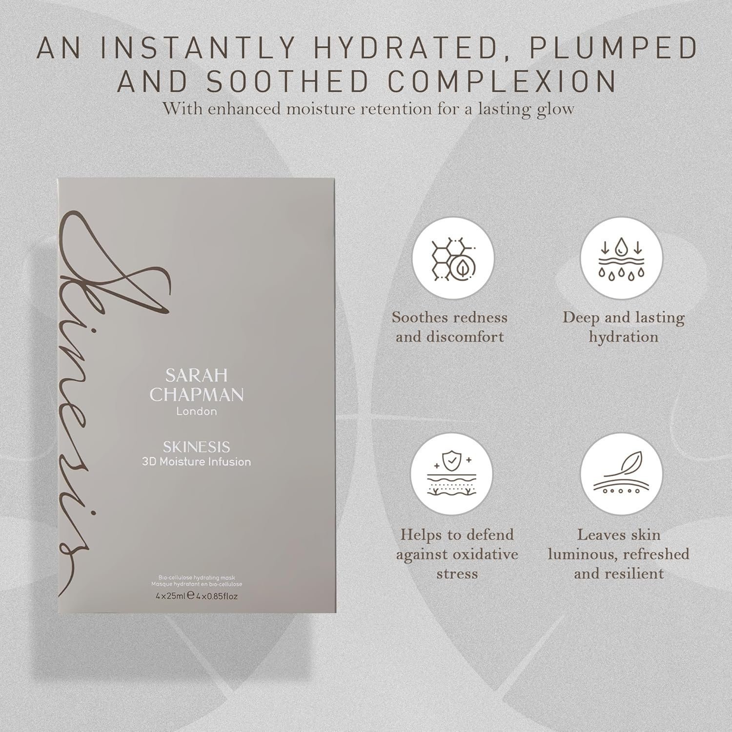 Sarah Chapman Skinesis 3D Moisture Infusion Mask Kit – Pack of 4 Hyaluronic Acid Moisturiser Sheet Masks